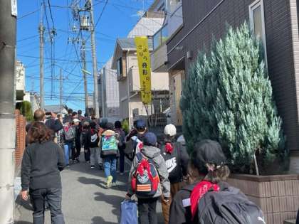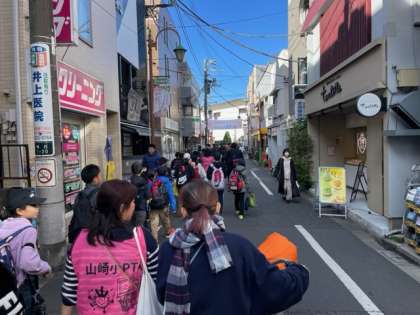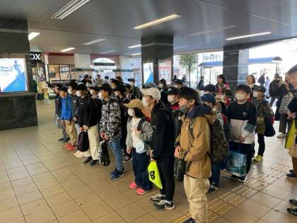 梅ヶ丘商店街でのお見送りを受けて、梅ヶ丘駅に到着。これから電車に乗って東京駅に向かいます。