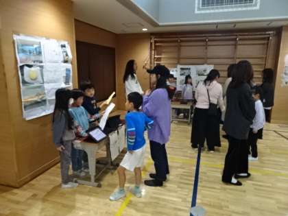 2年生が、全国大会でも発表した町のすてきの発表をしました。この前は、知らない人の前でしたが、今日は保護者やお店の人の前で、この前以上に元気に発表していました。ご参加いただきありがとうございました。