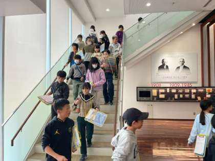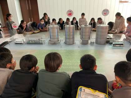 パンダバスに乗って包装工場とスープ工場を見学。工場内の様子は、写真に撮れないので子どもたちに聞いてください。見学で取材出来なかったことをパネルで確認しています。