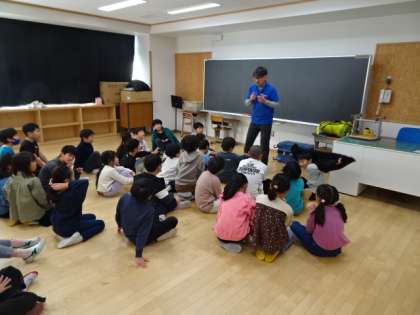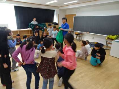 チームビルディングでは、仲間づくりのゲームを通して一人一人が違っていてよい、色々な考え方があるということを確かめました。最後は、時間内にクラス全員がフラフープをくぐるという加害に取り組みました。みんなで工夫し、話し合いながらタイムを縮めようと挑戦していました。