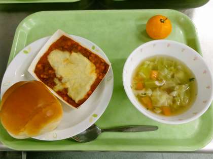 バターロール(国産小麦) 牛乳 シェパーズパイ スコッチブロス くだもの(みかん 特別栽培)