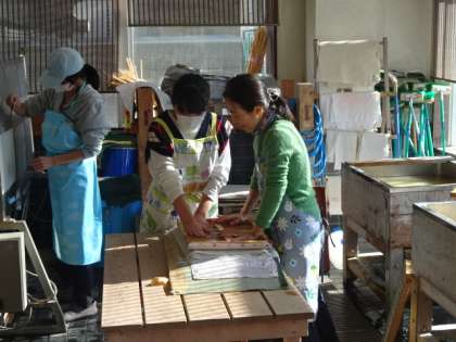 6年生が卒業式に受け取る卒業証書の紙すきを行いました。代沢小では、山崎小学校の伝統工芸室で自分で漉いた和紙を卒業証書にしています。今年も12日(火)に1組、13日(水)に2組が山崎小まで歩いて紙すきにいきました。説明をしっかりときいて真剣に紙すきをしました。3月の卒業式に受け取るのを楽しみにしていてください。