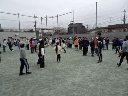 今日の5・6年生の朝のランランタイムの長縄は、記録会でした。少し寒い朝でしたが、声を掛け合いながらみんなで記録を伸ばそうと頑張りました。これまでの練習の成果は発揮できたでしょうか?