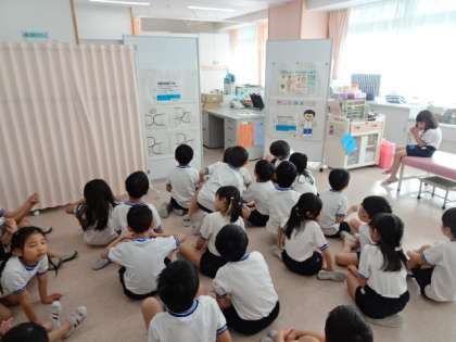 今日の1年生の身体計測で、3学期の計測が終わりました。1年生も静かに計測を受けています。