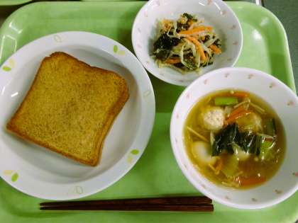 メープルトースト 牛乳 春雨スープ わかめサラダ