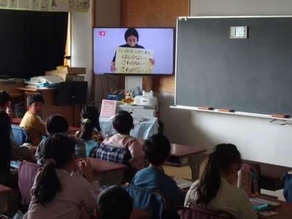 いよいよ展覧会が始まりました。朝の時間「展覧会見どころ集会」として、小久保先生からの鑑賞の仕方のお話、各学年で作成した「展覧会見どころムービー」の紹介がありました。