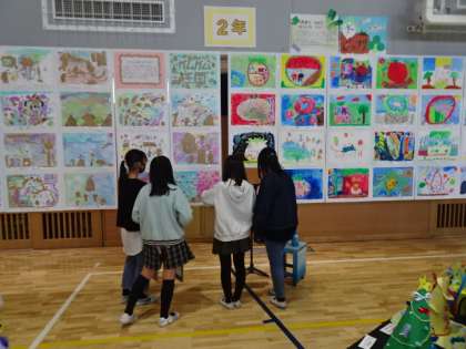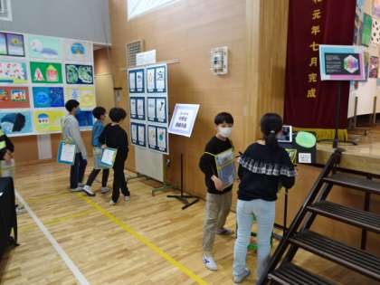 展覧会2日目。今日の児童鑑賞は4・5・6年生。作品だけでなく、制作ムービーもしっかりと見ています。中学生のじっくり見ながら「すごいな」と感心していました。