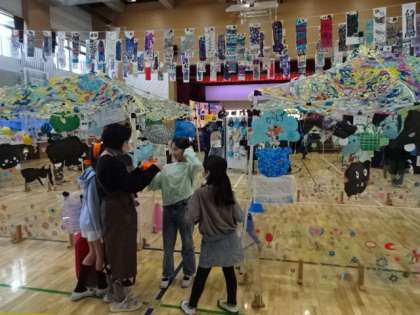 午後からは、保護者の方と一緒の参観です。前回はコロナでできませんでしたが、今回は親子で楽しそうに参観する姿が見られてよかったです。展覧会鑑賞ボランティアの子どもたちも張り切って活動していました。
