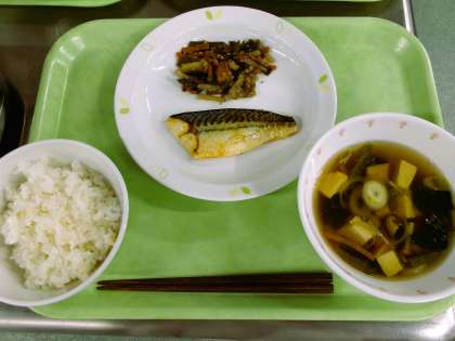 麦ごはん 牛乳 文化干し 茎わかめの炒め煮 とろみ汁