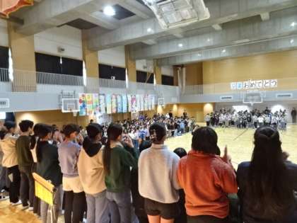 最後に全員で「ありがとうの花」を歌って会を終えました。代表委員会を中心に準備をしてきた「6年生を送る会」すべての人の心に残る良い会となりました。6年生、これまでありがとうございました。卒業までの残り少ない時間を有意義に過ごしてください。