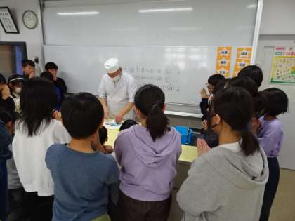 2学期からヒラメを育ててきた5年生。今日は、そのヒラメの命を「いただく」学習をしました。これまでご指導いただいた齋藤さんが調理したヒラメをいただきました。「いただきます」には、命への感謝、調理をしている人への感謝、生産してくれる方への感謝の3つが大切だということを改めて教えていただきました。