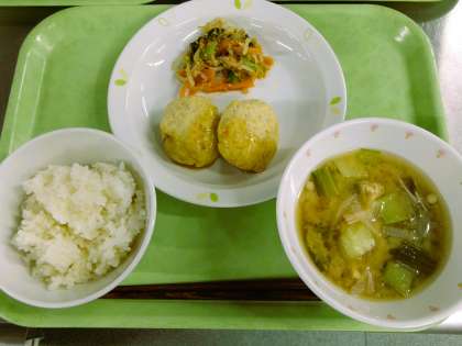 ひえごはん 牛乳 さくさくつくね 野菜のごまあえ みそ汁