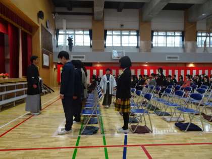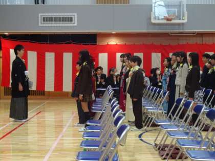 卒業式が始まりました。みんな少し緊張気味ですが、しっかりとした態度で入場しました。