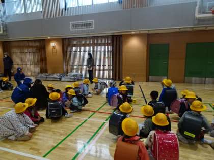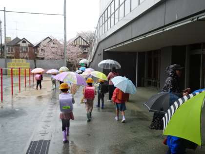 1年生は、4月中、登下校のコースごとに「集団下校」を行います。集団下校初日の今日は強い雨が降っていたので、体育館にコースごとに並んでから下校しました。先生方やお手伝いをしてくれるPTAの方と一緒の下校です。雨風が強く心配でしたが、みんな安全に帰れました。よく頑張りました。明日からは天気がよくなるといいですね。