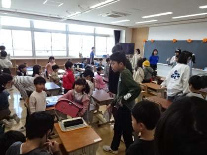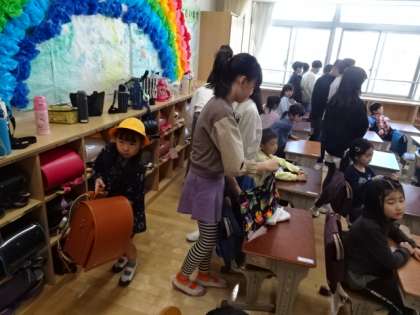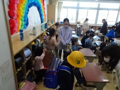 1年生の教室では、今日も6年生が朝の準備のお手伝いをしてくれています。準備が終わり教室に戻る6年生に「ありがとう」をしっかりと言えています。どんどん仲良くなっています。