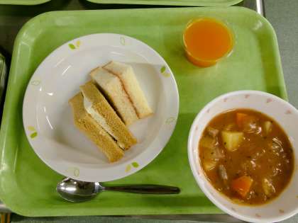 二色サンド 牛乳 ポークシチュー みかんゼリー