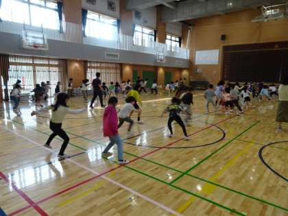 今日から校庭と体育館で体力向上に取り組むランランタイムが始まりました。校庭では4年生がラジオ体操と持久走。体育館では3年生が体力テストで取り組む反復横跳びの練習を行いました。火・木・金の朝の時間(ランランタイム)は、体力づくりと計算と読書に計画的に取り組んでいきます。朝の短い時間ですが集中して取り組んでいきましょう。
