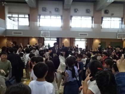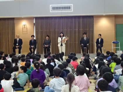 3月で代沢小学校を去られた先生方、主事さん方をお招きして離任式を行いました。体育館に2年生から6年生が集合しての離任式。参加された先生方、主事さん方へ、代表がお手紙を読んで花束を渡しました。離任された先生方のお話もみんなしっかりと聞いていました。短い時間でしたが温かい雰囲気の中での離任式となりました。これからもお元気でご活躍ください。