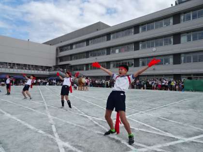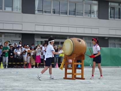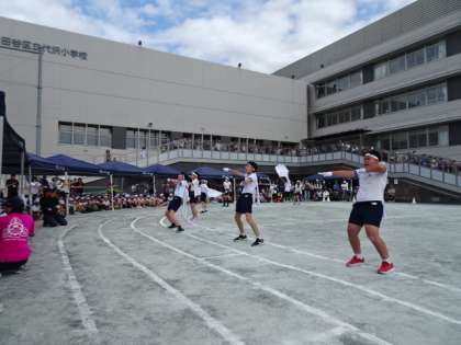 プログラム1「応援合戦」です。これまで朝早く登校したりして練習に励んできた応援団。いよいよ本番です。団長を中心に大きな声で運動会を盛り上げてくれました。協議中の応援や休憩中の応援も頑張って取り組みました。素晴らしい応援をありがとうございました。