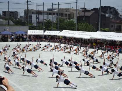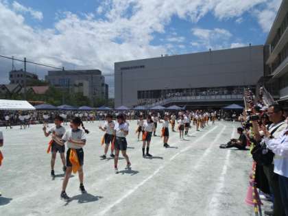 プログラム17、6年生の表現「〜友情のステージ 代沢エール〜」です。小学校最後の表現。みんなで考え工夫した演技を最後までやり切りました。体育着のよごれも気にせず、生後まで演じ切る姿はさすが代沢小の6年生です。
