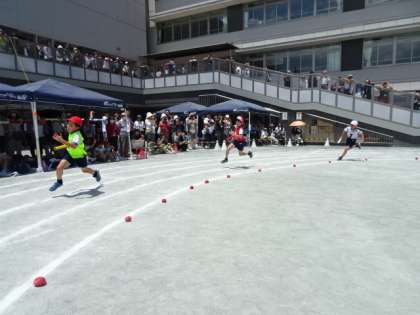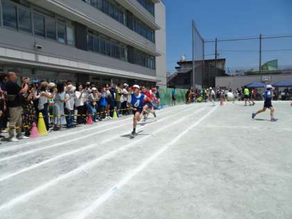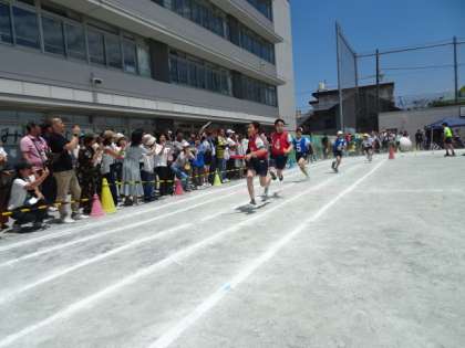 プログラム18,5・6年生の「高学年選抜リレー」です。選手としてこれまで練習してきた力を発揮できるよう最後まで頑張りました。熱い走りに応援も最高潮に達しました。