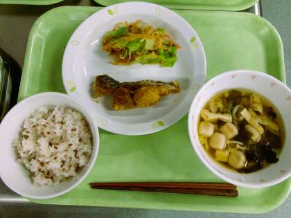赤米ごはん 牛乳 魚の南蛮揚げ 野菜のおかかかけ えのきのみそ汁