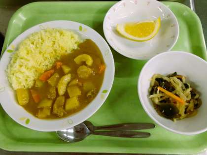 シーフードカレー 牛乳 だいこんサラダ くだもの(特別栽培 ジューシーフルーツ)