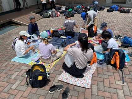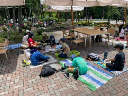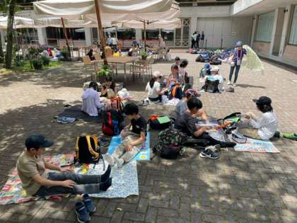 開室式を終え、広場でお弁当を食べています。川場の美味しい空気の中で食べるお弁当は最高です。お弁当の準備、ありがとうございました。いただきます。