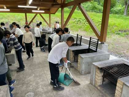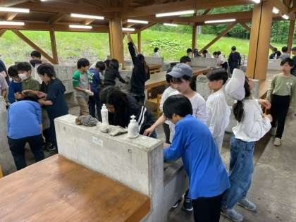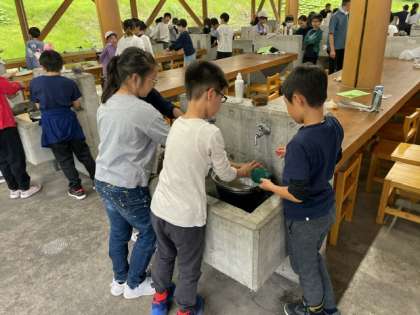 どの班のカレーも同じ材料なのに、味が少しずつ違いました。ごちそうさまをして協力して片付けをしています。