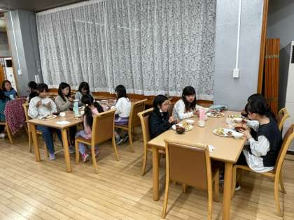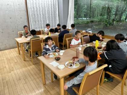 ふじやまビレジでの最後の夕食。しっかり食べましょう。いただきます。