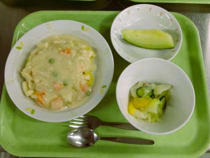 クリームライス 牛乳 キャベツのサラダ くだもの(タカミメロン 特別栽培)