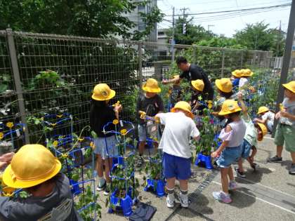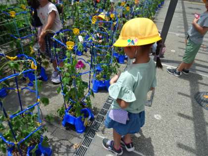 1年生が大切に育ててきたアサガオ。ツルも伸びて、少しずつ花が咲いてきました。みんなで観察したり、お水をあげたりしています。これからどんどん花が咲いてきます。楽しみにしていましょう。