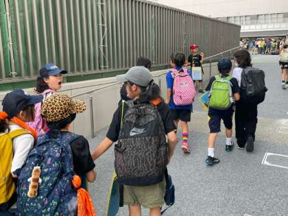道路も順調に進んで、予定通り学校に到着しました。暑い中の社会科見学でしたが、最後までよく頑張りました。今日学んだこと、しっかりとまとめをしましょう。今日は、ゆっくり休んで、明日の日生劇場の観劇も頑張りましょう。さよなら。