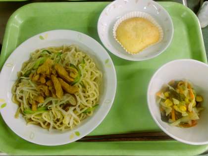 冷やし中華 牛乳 梅ドレサラダ パインケーキ