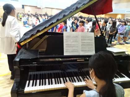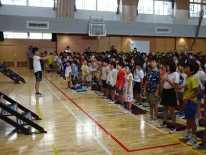 一学期も今日で終了。体育館で終業式を行いました。代表の言葉は3年生。1学期に頑張ったことや2学期の抱負をしっかりと話してくれました。充実した1学期だった様子が伝わりました。校歌は、明日の舟形交流のお迎え集会で指揮とピアノを担当する5年生の演奏でみんなで歌いました。5年生は、代沢小の代表として明日も元気に校歌を歌ってください。