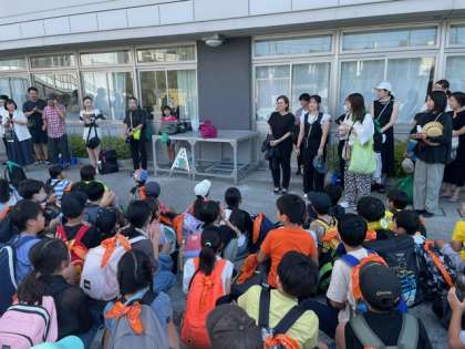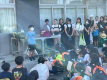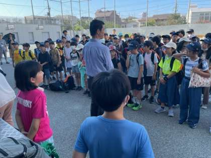 夏休み初日、良い天気の中、5年生が舟形交流に出発します。出発式には、多くの保護者の方にも来ていただきました。3日間、安全で楽しく過ごしてきましょう。