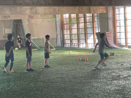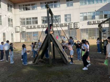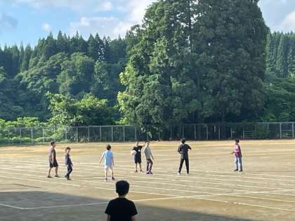 なかよしタイムが始まりました。広い校庭やアスレチック、ピロティなどで遊んでいます。