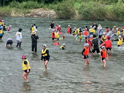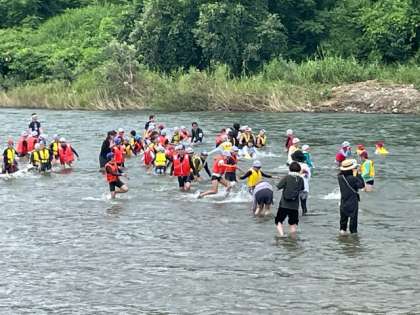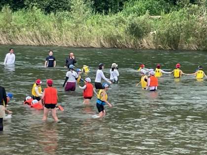 昼食を終えて、2回めの川遊びをしています。1回めより楽しい様子が声から伝わります。最後まで楽しみましょう。