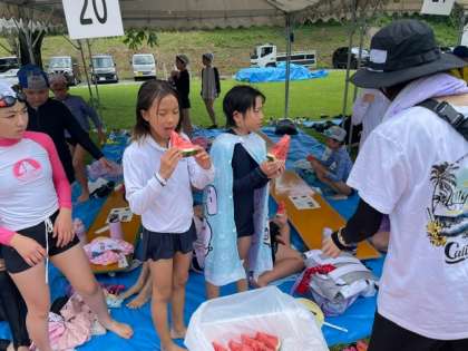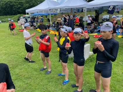 2回めの水遊びを終えて、スイカタイムです。美味しくいただきます。