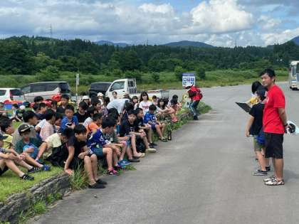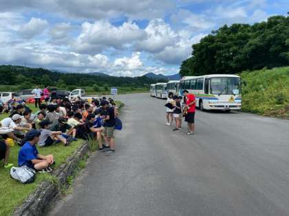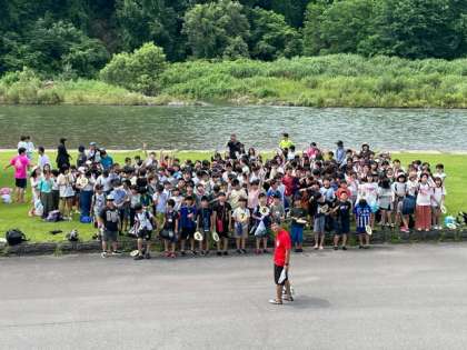 水遊びを終えて、着替えをして集合写真を撮りました。その後、帰りの会をして宿泊場所に向かいます。
