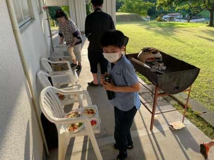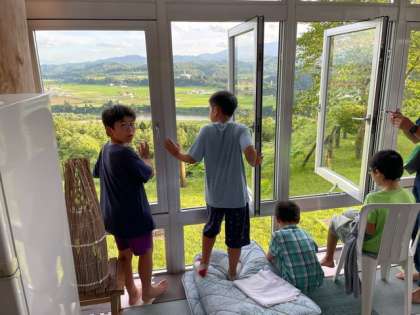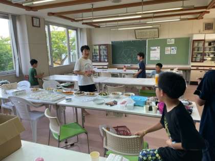 2カ所めは、実習館です。夕食は、自分たちで作ったピザです。高いところにある実習館は、景色がとても良いです。