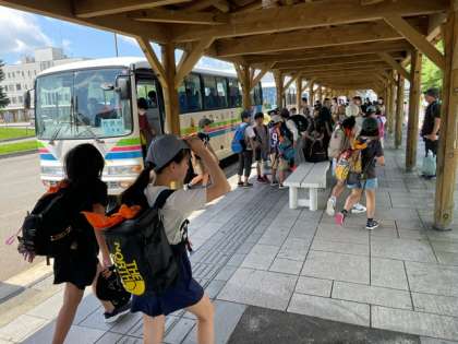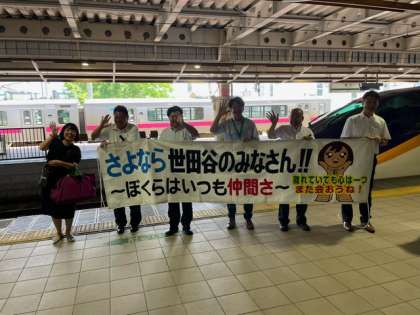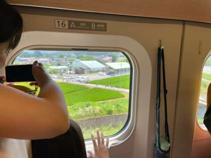 新庄駅でトイレ休憩をして新幹線に乗りました。和田校長先生、PTA会長さん、舟形町教育委員会の方がお見送りに来てくれました。さようなら。