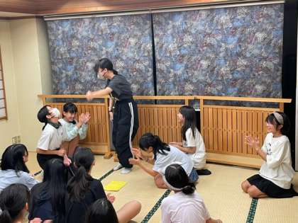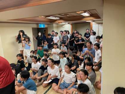 全17班の発表が終わりました。どの班も短い時間で協力した様子がよく伝わってきました。最後は、先生たちからです。盛り上がっています。