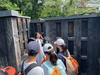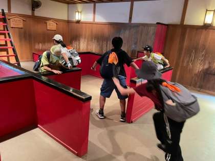 江戸村を楽しんでいます。迷路が難しいです。