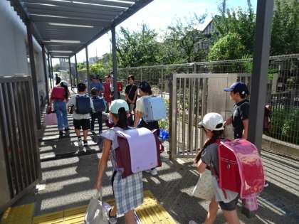 台風10号の進路が心配されましたが、今日は朝から良い天気となり、子どもたちが元気に登校してきました。今日から2学期が始まります。