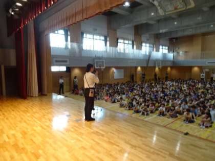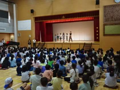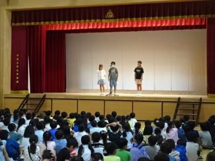 2学期の始業式も体育館で実施しました。校長先生のお話の後、2学期から3年生から6年生の算数少人数を担当する山本先生の紹介がありました。始業式の代表の言葉は5年生。1学期や夏休みの行事などを通して学んだことを2学期もしっかりと生かしていくという強い決意がよく表れた立派な挨拶でした。また、2学期から一緒に勉強する転入生の紹介もありました。校歌も元気に歌いました。みんなで楽しく、仲良く、安全に2学期を過ごしましょう。