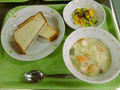 ジャムサンド 牛乳 チャウダー トロピカルサラダ