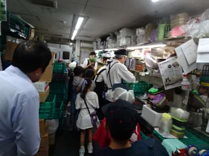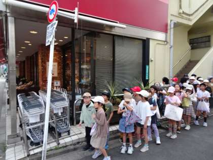 3年生が、社会の「販売の仕事」の学習として、地域のスーパーマーケットの「信濃屋」さんに見学にいきました。売り場にどんなコーナーがあるのか、商品の名食べ方の秘密など、お店の中を一周しながら優しく教えていただきました。また、特別にバックヤードで魚を切り分けているところも見せていただき、普段はみることのできない光景に子どもたちは興味津々でした。