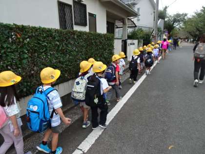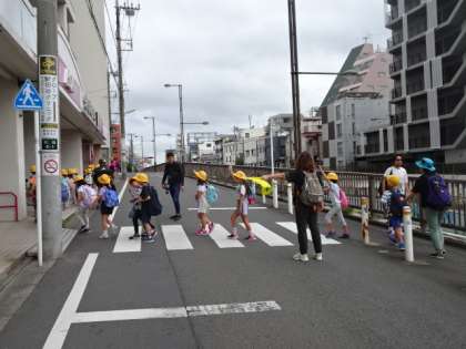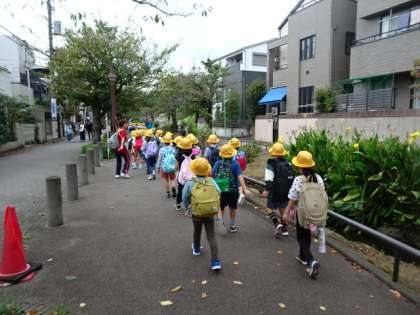 1年生が、小学校に入って初めての遠足に羽根木公園に出かけました。雨が心配されましたが、行くと途中に少し降られただけで、後は、予定通り行うことができました。学校から羽根木公園まで、みんなで交通ルールを守ってしっかりと歩くことができました。