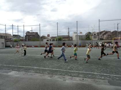 今日は天候がすぐれませんでしたが、6年生が元気に校庭で運動しました。